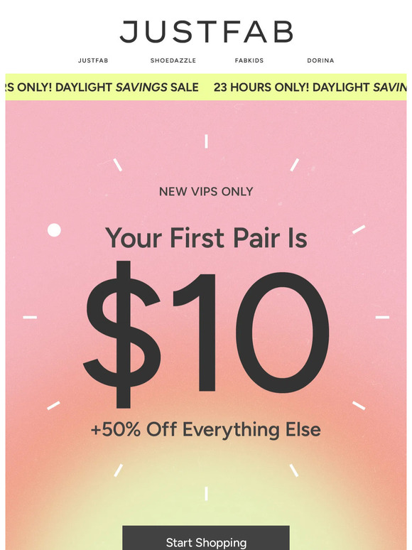justfab first pair 10 dollars Gold White Black Red Blue Beige Grey Price Rose Orange Purple Green Yellow Cyan Bordeaux pink Indigo Brown Silver