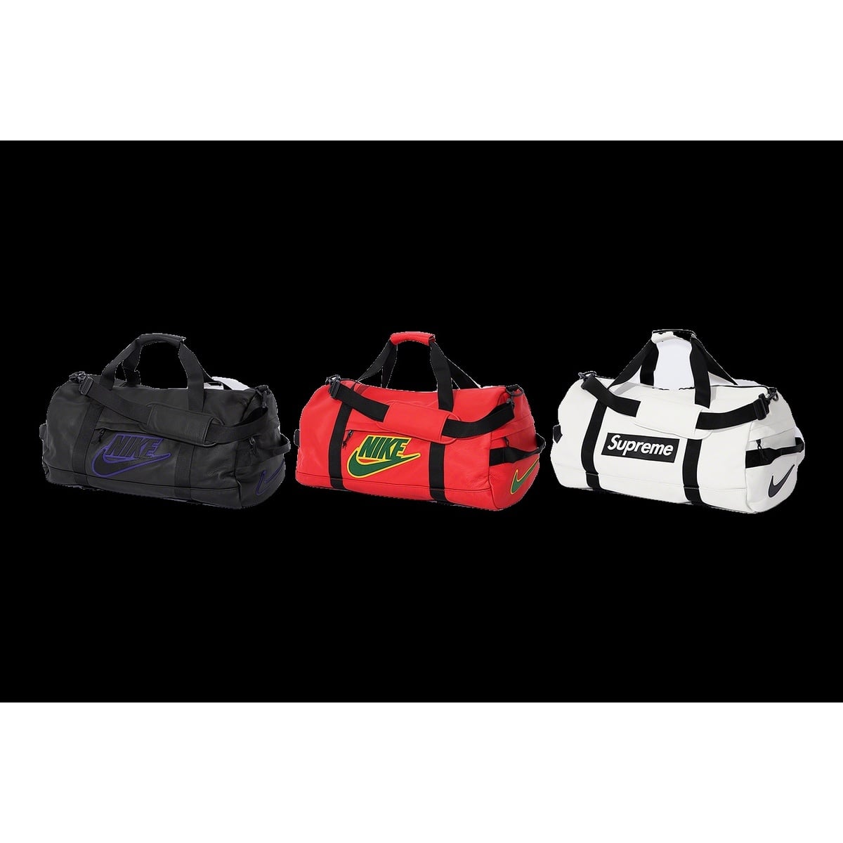 nike supreme duffle Gold White Black Red Blue Beige Grey Price Rose Orange Purple Green Yellow Cyan Bordeaux pink Indigo Brown Silver