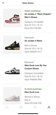 nike order history Gold White Black Red Blue Beige Grey Price Rose Orange Purple Green Yellow Cyan Bordeaux pink Indigo Brown Silver